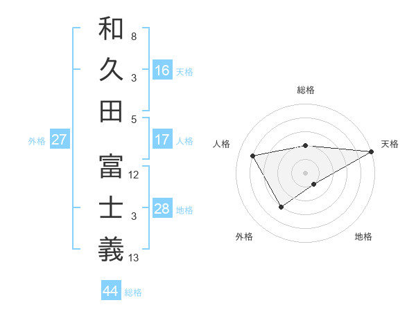 和久田 富士義さんを姓名の画数から五運を鑑定