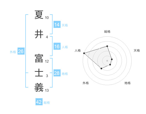 夏井 富士義さんを姓名の画数から五運を鑑定