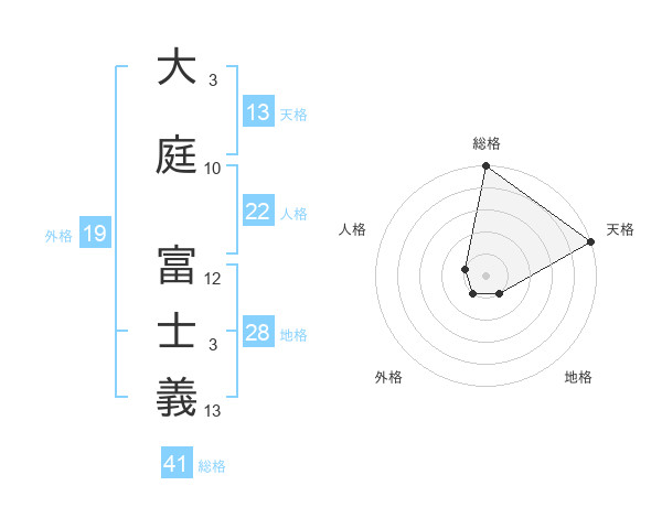 大庭 富士義さんを姓名の画数から五運を鑑定
