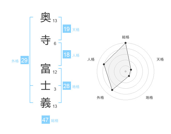 奥寺 富士義さんの総格は47画の5点!