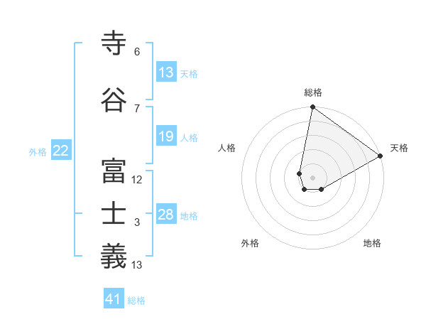 寺谷 富士義さんの天格は13画の5点!