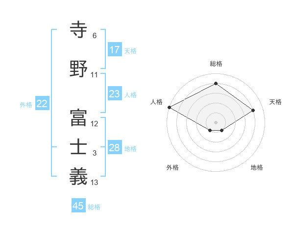 寺野 富士義さんの総格は45画の4点!