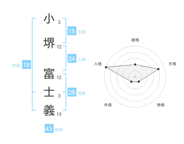小堺 富士義さんを姓名の画数から五運を鑑定