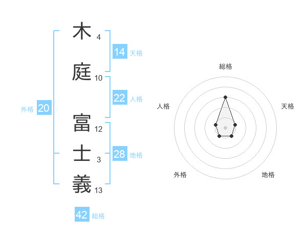 木庭 富士義さんを姓名の画数から五運を鑑定