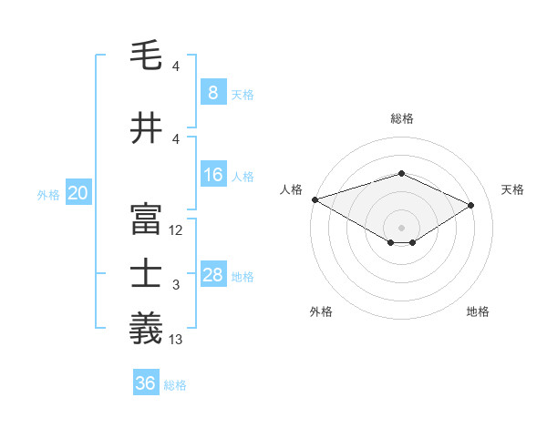 毛井 富士義さんの天格は8画の4点!