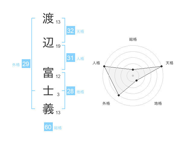 渡辺 富士義さんを姓名の画数から五運を鑑定