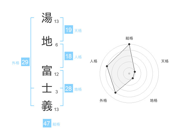 湯地 富士義さんを姓名の画数から五運を鑑定