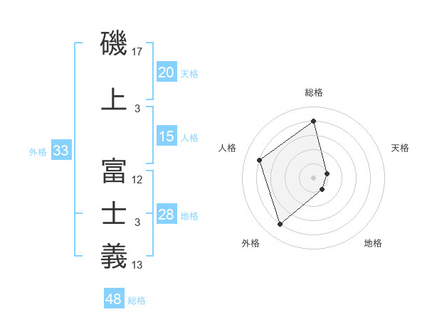 磯上 富士義さんを姓名の画数から五運を鑑定
