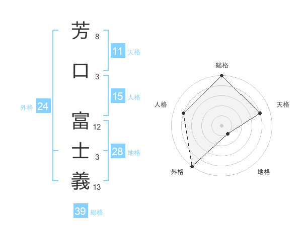 芳口 富士義さんを姓名の画数から五運を鑑定