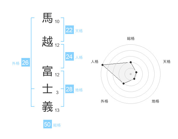 馬越 富士義さんの総格は50画の2点!