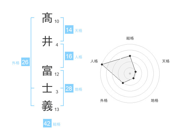 髙井 富士義さんを姓名の画数から五運を鑑定