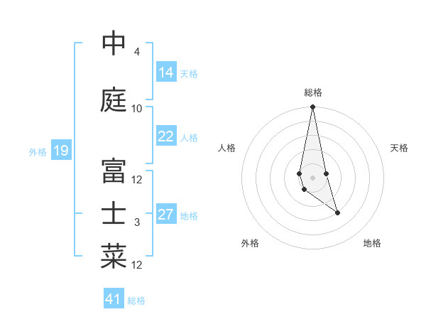 中庭 富士菜さんを姓名の画数から五運を鑑定