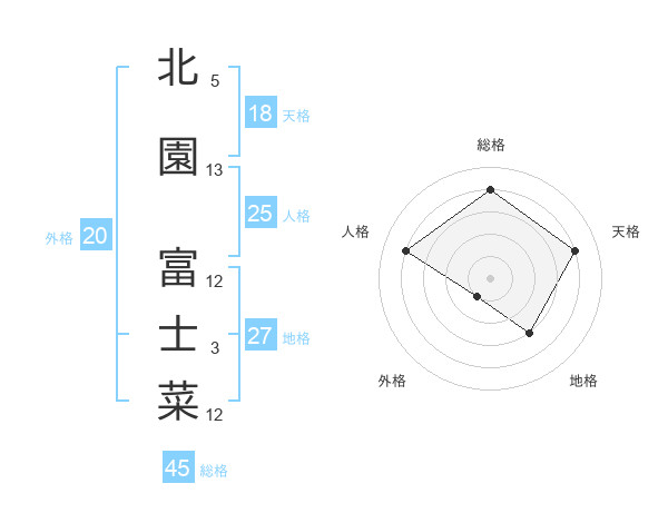 北園 富士菜さんを姓名の画数から五運を鑑定