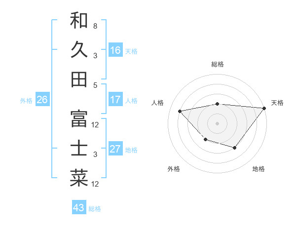 和久田 富士菜さんを姓名の画数から五運を鑑定