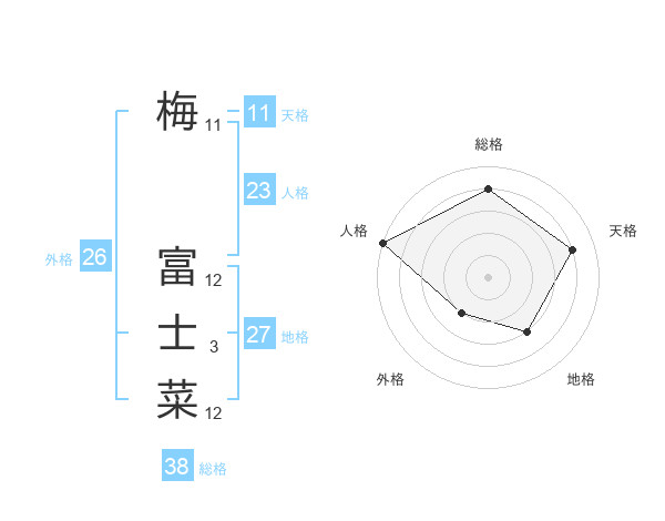 梅 富士菜さんの総格は38画の4点!