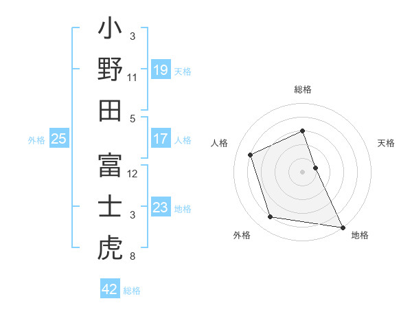 小野田 富士虎さんを姓名の画数から五運を鑑定