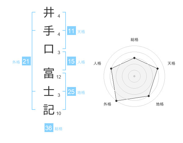 井手口 富士記さんを姓名の画数から五運を鑑定