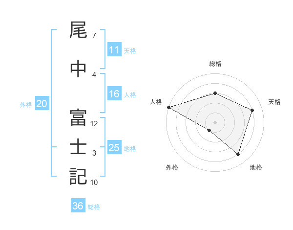 尾中 富士記さんを姓名の画数から五運を鑑定