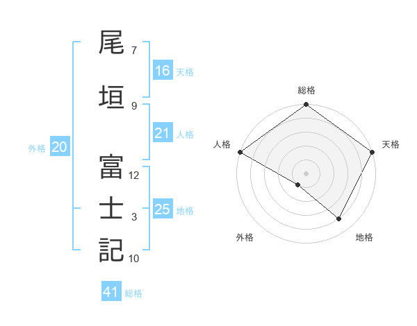 尾垣 富士記さんの天格は16画の5点!