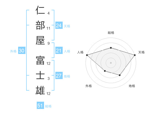 仁部屋 富士雄さんの総格は51画の3点!