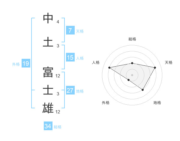 中土 富士雄さんを姓名の画数から五運を鑑定