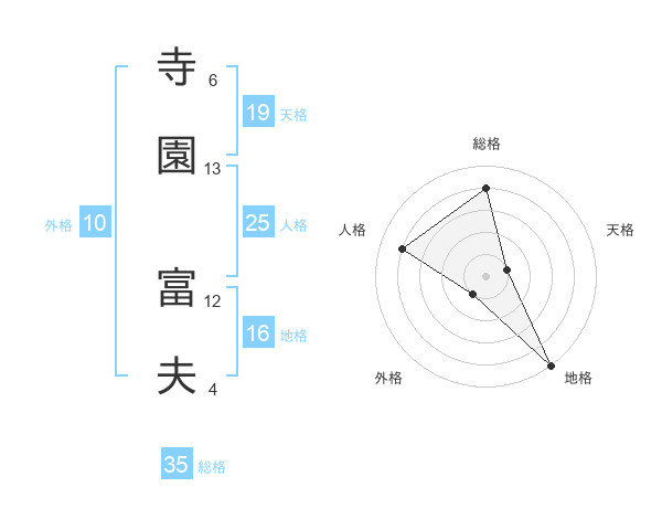 寺園 富夫さんの総格は35画の4点!