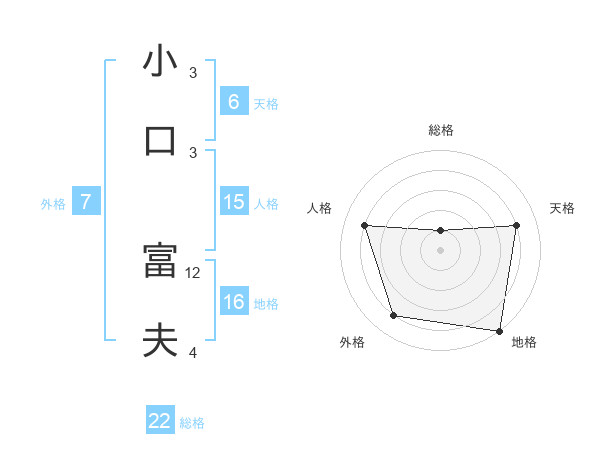 小口 富夫さんの総格は22画の1点!