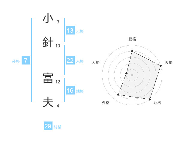 小針 富夫さんの総格は29画の4点!