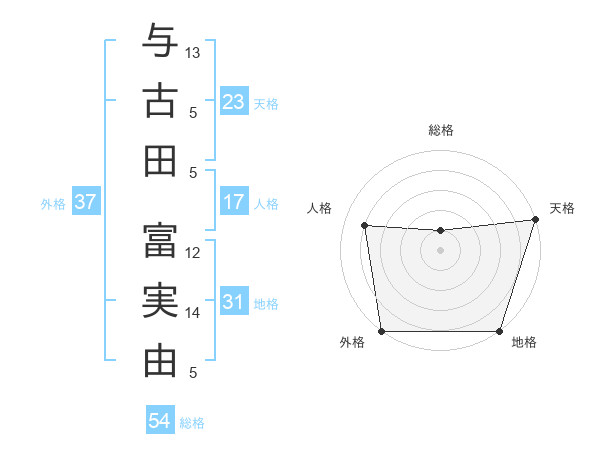 与古田 富実由さんの外格は37画の5点!