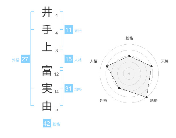 井手上 富実由さんを姓名の画数から五運を鑑定