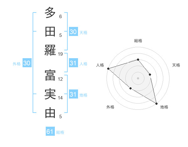 多田羅 富実由さんの総格は61画の3点!