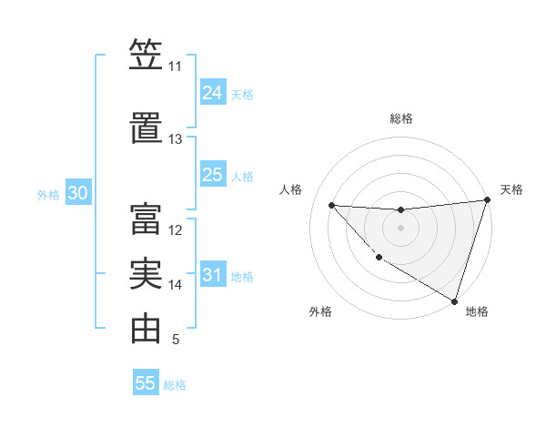 笠置 富実由さんを姓名の画数から五運を鑑定