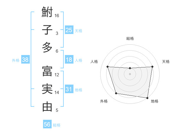 鮒子多 富実由さんを姓名の画数から五運を鑑定