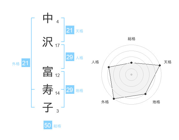 中沢 富寿子さんを姓名の画数から五運を鑑定