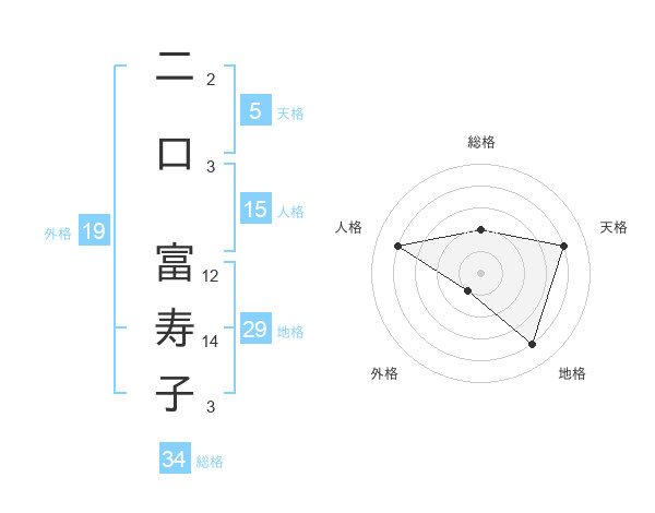 二口 富寿子さんの天格は5画の4点!