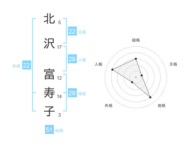 北沢 富寿子さんを姓名の画数から五運を鑑定