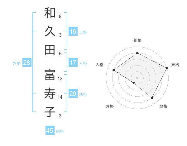 和久田 富寿子さんを姓名の画数から五運を鑑定