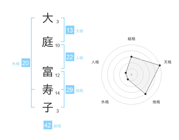 大庭 富寿子さんの総格は42画の3点!