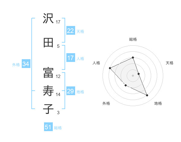 沢田 富寿子さんの総格は51画の3点!