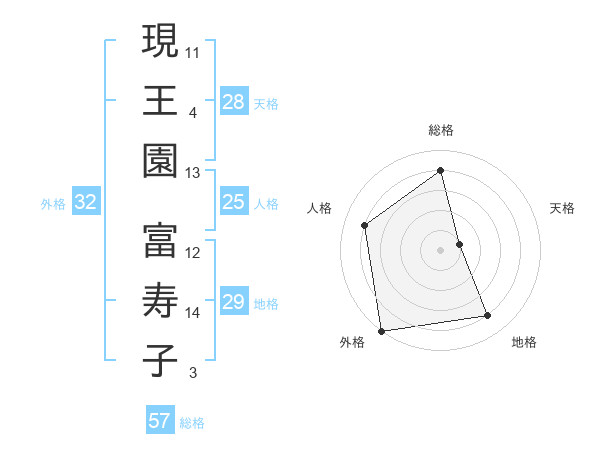 現王園 富寿子さんの外格は32画の5点!