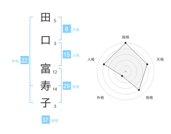 田口 富寿子さんを姓名の画数から五運を鑑定