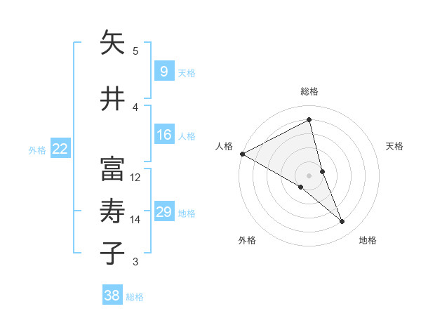 矢井 富寿子さんの外格は22画の1点!