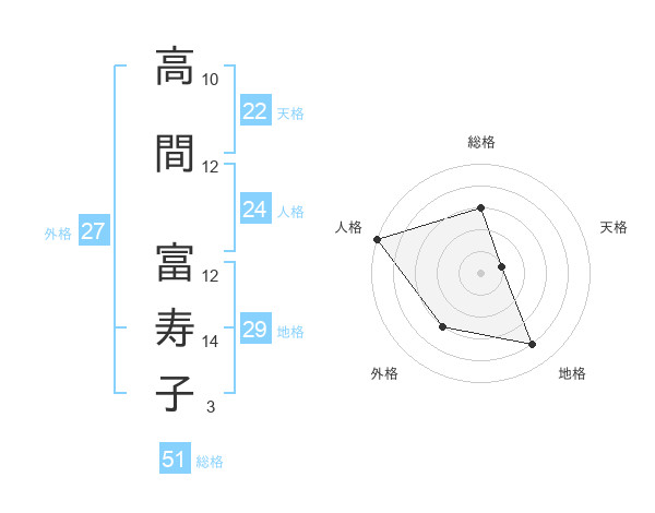高間 富寿子さんを姓名の画数から五運を鑑定