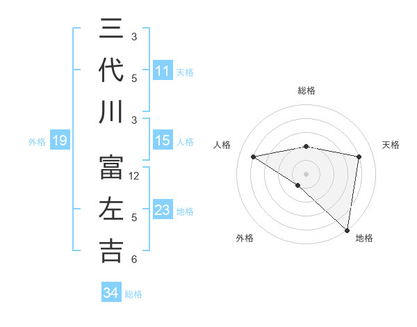 三代川 富左吉さんの総格は34画の2点!