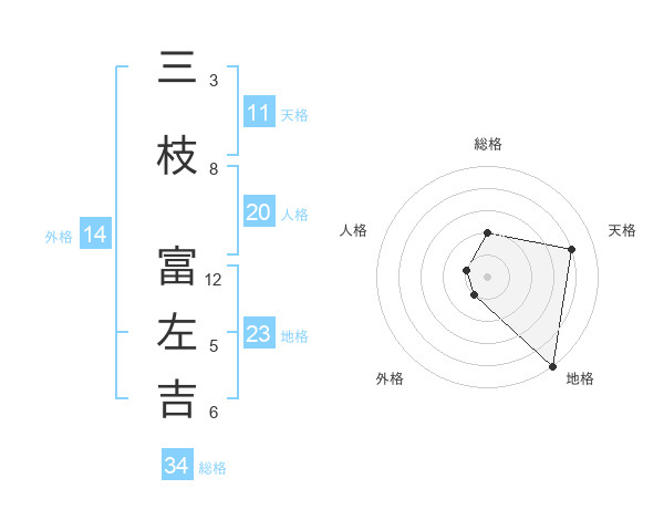 三枝 富左吉さんの総格は34画の2点!