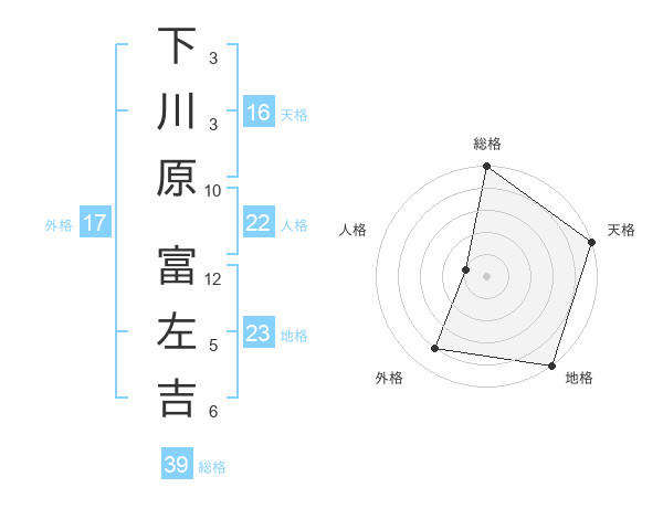 下川原 富左吉さんを姓名の画数から五運を鑑定