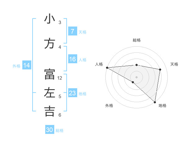 小方 富左吉さんの総格は30画の2点!