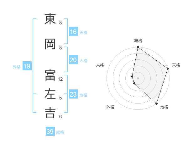 東岡 富左吉さんの総格は39画の5点!