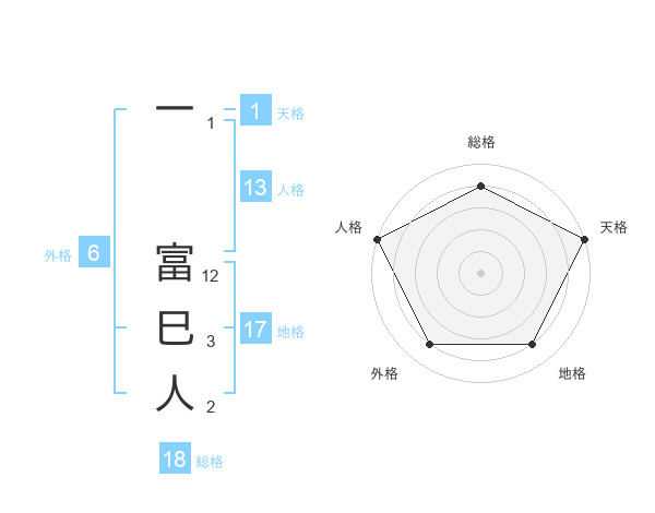 一 富巳人さんの総格は18画の4点!