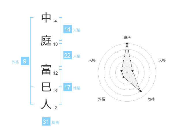 中庭 富巳人さんを姓名の画数から五運を鑑定
